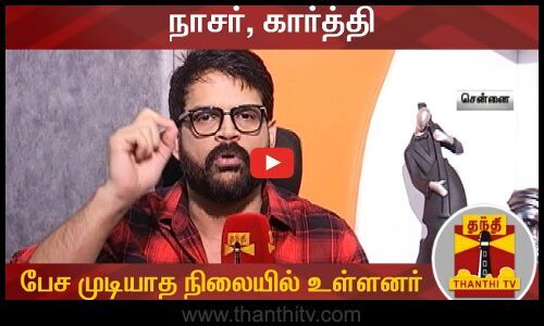 நடிகர்கள் நாசர், கார்த்தி பேச முடியாத சூழலில் உள்ளனர் என நடிகர் ஷ்யாம் தெரிவித்துள்ளார்.