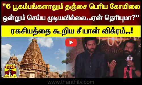 மும்பையில் நடந்த 'பொன்னியின் செல்வன்' பிரோமோஷன் நிகழ்ச்சியில், தஞ்சை பெரிய கோயிலின் பெருமையை பற்றி, விக்ரம் பேசிய வீடியோ தற்போது