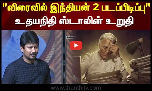 விரைவில் இந்தியன் 2 படத்திற்கான பணிகள் தொடங்கும் என உதயநிதி ஸ்டாலின் தெரிவித்துள்ளார். கமல்ஹாசன் நடிப்பில் உருவாகி வந்த இந்தியன் 2 படம், தயாரிப்பாளர் மற்றும் இயக்குநர் ஷங்கருக்கு இடையேயான கருத்து வேறுபாட்டால் பாதியிலேயே நின்றது. இந்த சூழலில், சென்னையில் நடைபெற்ற டான் படத்தின் நிகழ்ச்சியில் பேசிய உதயநிதி ஸ்டாலின், இந்தியன் 2 படம் தொடர்பாக லைகா நிறுவனத்துடன் பேசி வருவதாகவும், விரைவில் படப்பிடிப்பு தொடங்கும் எனவும் உறுதி அளித்தார்.