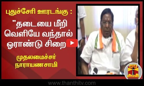 "தடையை மீறி வெளியே வந்தால் ஓராண்டு சிறை" - புதுச்சேரி முதலமைச்சர் நாராயணசாமி எச்சரிக்கை