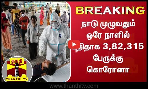 கொரோனா பாதிப்பு காரணமாக கடந்த 24 மணி நேரத்தில் 3 ஆயிரத்து 780 பேர் உயிரிழந்துள்ளனர்.மத்திய சுகாதாரத்துறை அமைச்சகம் வெளியிட்டுள்ள புள்ளி விவரத்தின்படி,கடந்த 24 மணி நேரத்தில் 3 லட்சத்து 82 ஆயிரத்து 315 பேருக்கு கொரோனா பாதிப்பு கண்டறியப்பட்டுள்ளது.இதன் மூலம் மொத்த பாதிப்பு எண்ணிக்கை 2 கோடியே 6 லட்சத்து 65ஆயிரத்து 148 ஆக உயர்ந்துள்ளது.3 ஆயிரத்து 780 பேர் உயிரிழந்ததை தொடர்ந்து, மொத்த இறப்பு எண்ணிக்கை இரண்டு லட்சத்து 26 ஆயிரத்து 188 ஆக அதிகரித்துள்ளது.