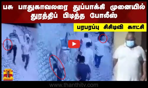 பசு பாதுகாவலரை துப்பாக்கி முனையில் துரத்திப் பிடித்த போலீஸ் - பரபரப்பு சிசிடிவி காட்சி