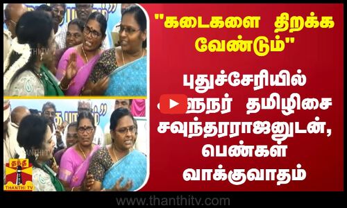 நலத்திட்ட உதவிகள் வழங்கும் விழாவில் பங்கேற்ற புதுச்சேரி துணை நிலை ஆளுநர் தமிழிசை சவுந்தரராஜனிடம், புதுச்சேரியில் ரேஷன் கடைகளை திறக்க கோரி பெண்கள் வாக்குவாதத்தில் ஈடுபட்டதால் பரபரப்பு ஏற்பட்டது.