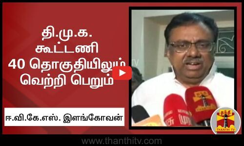 தி.மு.க. கூட்டணி 40 தொகுதியிலும் வெற்றி பெறும் - ஈ.வி.கே.எஸ். இளங்கோவன், காங்கிரஸ்