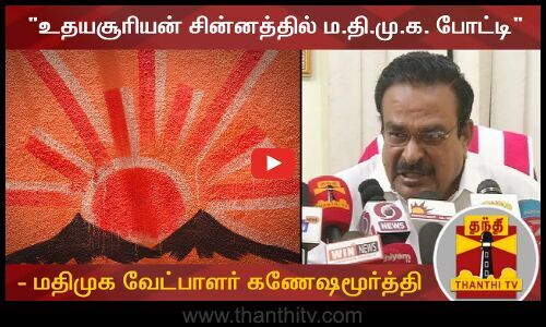 ஈரோடு மக்களவை தொகுதியில் உதயசூரியன் சின்னத்தில் ம.தி.மு.க. போட்டியிட இருப்பதாக அக்கட்சி வேட்பாளர் கணேஷமூர்த்தி தெரிவித்துள்ளார்.