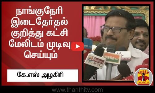 சுதந்திர போராட்ட வீரர் சத்தியமூர்த்தி, மற்றும் முன்னாள் தமிழக காங்கிரஸ் தலைவர் ஜி.கே.மூப்பனார் ஆகியோரின் பிறந்த நாள் விழா சென்னை சத்தியமூர்த்தி பவனில் நடைபெற்றது. அதில் கலந்து கொண்ட பின் செய்தியாளர்களை சந்தித்த தமிழக காங்கிரஸ் தலைவர் கே.எஸ்.அழகிரி, நாங்குநேரி சட்டமன்ற இடைத்தேர்தலில் காங்கிரஸ் கட்சியின் நிலைப்பாடு என்ன என்பது குறித்து கட்சி மேலிடம் முடிவு செய்யும் என்றார்.