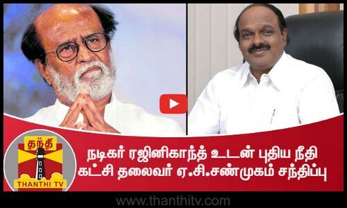 சட்டமன்ற தேர்தல் நெருங்கி வரும் நிலையில், அரசியல் கட்சிகள் பம்பரமாக சுழல தொடங்கி உள்ளன. நடிகர் ரஜினிகாந்தின் நகர்வு என்ன என்பது, அரசியல் வட்டாரத்தில் பெரும் எதிர்பார்ப்பை ஏற்படுத்தி உள்ளது. இந்த நிலையில், போயஸ்தோட்ட இல்லத்தில் புதிய நீதிக் கட்சி தலைவர் ஏ.சி.சண்முகம், நடிகர் ரஜினிகாந்த்தை சந்தித்தார். அரசியலுக்கு வருவது உறுதி என தெரிவித்திருந்த ரஜினிகாந்த், ஏ.சி.சண்முகத்திற்கு சொந்தமான கல்லூரி விழாவில், அரசியல் வெற்றிடம் பற்றி பேசியது பெரும் பரபரப்பை ஏற்படுத்தியது குறிப்பிடத்தக்கது.