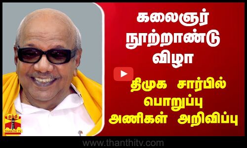 கலைஞர் நூற்றாண்டு விழாவை ஆண்டு முழுவதும் கொண்டாடுவதற்காக திமுக சார்பில் பொறுப்பு அணிகள் அறிவிக்கப்பட்டுள்ளது.கலைஞர் கருணாநிதி நூற்றாண்டு விழாவை ஓராண்டு கொண்டாடுவதற்கு திமுக சார்பில் பொறுப்பு அணிகள் அறிவிக்கப்பட்டுள்ளது. அதன்படி திமுக இளைஞரணி சார்பில் மாவட்டம் வாரியாக பேச்சுப்போட்டி நடத்தி 100 பேச்சாளர்களை கண்டறிந்து அவர்களுக்கு ஒரு நாள் பயிற்சி அளிக்க அறிவுறுத்தப்பட்டுள்ளது. அதேபோல் திமுக தகவல் தொழில்நுட்ப அணியினர் கலைஞர் Reels செய்து வெளியிட வேண்டும் என்றும் அனைத்து கல்லூரிகளிலும் திராவிட கொள்கைகளை கொண்ட மாணவர்கள் மூலம் தமிழ்நாடு மாணவர் மன்றம் உருவாக்கப்பட வேண்டும் எனவும் தெரிவிக்கப்பட்டுள்ளது. திமுக மாணவர் அணியுடன் இணைந்து மாணவர் மன்றம் செயல்பட வேண்டும் என்றும் அறிவுறுத்தப்பட்டுள்ளது.
