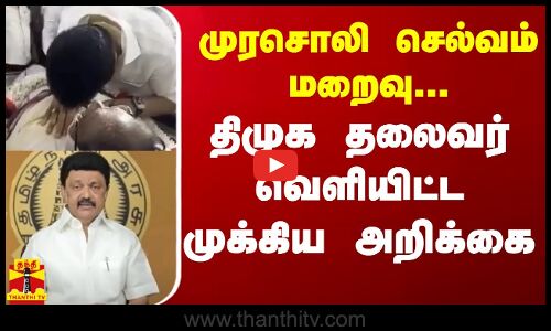 முரசொலி செல்வம் மறைவு... திமுக தலைவர் வெளியிட்ட முக்கிய அறிக்கை | DMK