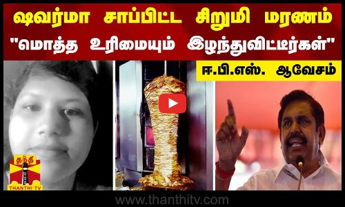 ஷவர்மா சாப்பிட்ட சிறுமி மரணம் - "மொத்த உரிமையும் இழந்துவிட்டீர்கள்"- ஈ.பி.எஸ். ஆவேசம்