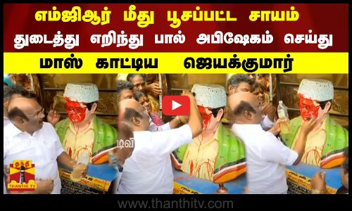 எம்ஜிஆர் மீது பூசப்பட்ட சாயம்.. துடைத்து எறிந்து பால் அபிஷேகம் செய்த ஜெயக்குமார்
