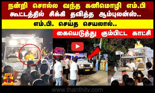 நன்றி சொல்ல வந்த கனிமொழி எம்.பி கூட்டத்தில் சிக்கி தவித்த ஆம்புலன்ஸ் .. எம்.பி. செய்த செயலால்..