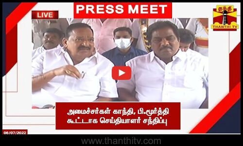 அமைச்சர்கள் காந்தி, பி.மூர்த்தி கூட்டாக செய்தியாளர் சந்திப்புஇடம்: கிருஷ்ணகிரி