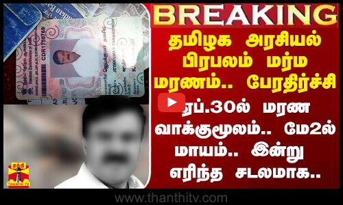 அரசியல் பிரபலம் மர்ம மரணம்.. 30ம் தேதி மரண வாக்குமூலம்.. 2ம் தேதி மாயம்.. இன்று எரிந்த சடலமாக மீட்பு