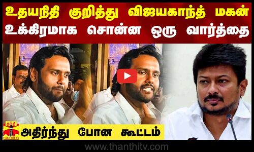 அமைச்சர் உதயநிதி குறித்து விஜயகாந்த் மகன் காட்டமாக சொன்ன ஒரு வார்த்தை.. அதிர்ந்து போன கூட்டம்