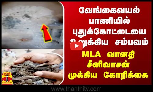 புதுக்கோட்டை மாவட்டம், சங்கம்விடுதி கிராம மேல்நிலை நீர்த்தேக்க தொட்டியில் மாட்டுச்சாணம் கலக்கப்பட்டது குறித்து தமிழ்நாடு அரசு முழுமையான விசாரணை நடத்த வேண்டும் என பாஜக எம்.எல்.ஏ வானதி சீனிவாசன் வலியுறுத்தியுள்ளார்... வேங்கைவயல் விவகாரத்தில் இதுவரை குற்றவாளிகள் யாரும் கைது செய்யப்படவில்லை என குற்றம் சாட்டிய அவர், புதுக்கோட்டை மாவட்டம் சங்கம் விடுதி கிராம விவகாரம் குறித்து முழுமையான விசாரணைக்கு வலியுறுத்தியுள்ளார்.
