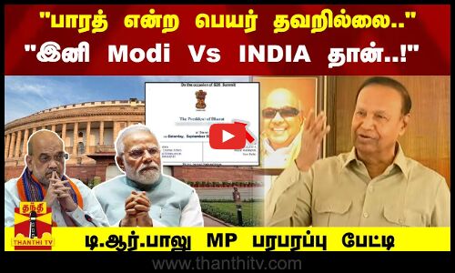 "பாரத் என்ற பெயர் தவறில்லை.." - "இனி Modi Vs INDIA தான்..!" - டி.ஆர்.பாலு MP பரபரப்பு பேட்டி