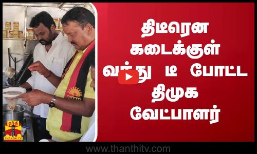 திடீரென கடைக்குள் வந்து டீ போட்ட திமுக வேட்பாளர்