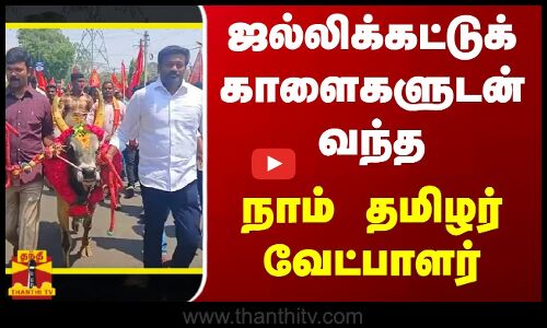 ஜல்லிக்கட்டுக் காளைகளுடன் வந்த நாம் தமிழர் வேட்பாளர்