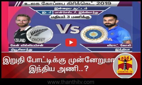 இந்தியா, நியூசிலாந்து அணிகளுக்கிடையேயான அரையிறுதி போட்டி இன்று மான்செஸ்டரில் நடைபெறுகிறது.