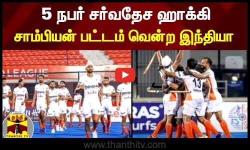 சுவிட்சர்லாந்தில் நடைபெற்ற 5 நபர் சர்வதேச ஹாக்கி தொடரில் இந்திய அணி சாம்பியன் பட்டம் வென்று உள்ளது. தொடரின் இறுதிப் போட்டியில் போலந்துடன் இந்தியா மோதியது. இரு அணி வீரர்களும் மாறி மாறி கோல்கள் அடித்ததால், போட்டி விறுவிறுப்பானது. இறுதியில் 6க்கு 4 என்ற கோல்கள் கணக்கில் இந்தியா த்ரில் வெற்றி பெற்று, சாம்பியன் பட்டத்தைக் கைப்பற்றியது.