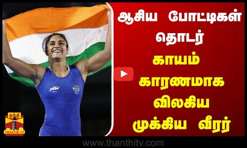 சீனாவில் அடுத்த மாதம் தொடங்கவுள்ள ஆசியப் போட்டிகளில் இருந்து மல்யுத்த வீராங்கனை வினேஷ் போஹத் விலகி உள்ளார். முழங்கால் பகுதியில் ஏற்பட்ட காயம் காரணமாக தன்னால் ஆசியப் போட்டிகளில் பங்கேற்க முடியாது என போஹத் அறிவித்துள்ளார். ஆசியப் போட்டிகளில் பங்கேற்க வினேஷ் போஹத்துக்கு நேரடியாக வாய்ப்பு வழங்கப்பட்ட நிலையில், காயம் காரணமாக அவர் விலகியுள்ளார். வினேஷ் போஹத்துக்கு பதிலாக ரிசர்வ் வீராங்கனையாக ஆன்டிம் பங்கல் சேர்க்கப்பட்டு உள்ளார்.