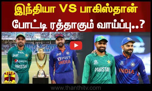 பிசிசிஐ மற்றும் பாகிஸ்தான் கிரிக்கெட் வாரியம் இடையே, தொடரும் விவாதத்திற்கு மத்தியில், வரும் 23ஆம் தேதி இந்தியா - பாகிஸ்தான் இடையே நடைபெறும் போட்டி ரத்தாகும் வாய்ப்பு இருப்பதாக தகவல் வெளியாகி உள்ளது...