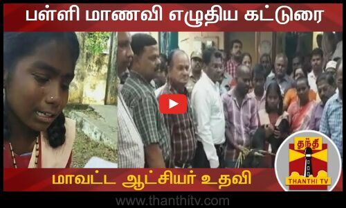 திருவண்ணாமலை மாவட்டம் செய்யாறு அடுத்த நெடுங்கல் கிராமத்தை சேர்ந்த ரூபிகா என்ற மாணவி அந்த பகுதியில் உள்ள பள்ளியில் 8ஆம் வகுப்பு படித்து வருகிறார். தங்கள் குடும்பம் குறித்து பள்ளியின் தலைமை ஆசிரியர் ஒரு கட்டுரை எழுதி வர சொன்னபோது, சிறுமி ரூபிகா கண்ணீரோடு தன் தந்தையை பற்றியும் குடும்ப சூழல் பற்றியும் விளக்கியுள்ளார். இதனை பார்த்த தலைமை ஆசிரியர் இந்த காட்சியை மாவட்ட ஆட்சியருக்கு அனுப்பியுள்ளார். இதனை பார்த்த மாவட்ட ஆட்சியர் கந்தசாமி, மாணவியின் நிலையை புரிந்து கொண்டதோடு அவரின் வீட்டிற்கு நேரடியாக சென்றுள்ளார். மாணவியின் தந்தைக்கு 30ஆயிரம் ரூபாய் மதிப்பில் 4 ஆடுகளை வழங்கியதோடு, அவர்கள் வாழ்வதற்கு 2 லட்சத்து 10 ஆயிரம் ரூபாய் மதிப்பிலான பசுமை வீடுகளை கட்டிக் கொள்வதற்கான ஆணையையும் வழங்கினார். ஆட்சியரின் இந்த செயலுக்கு மாணவியின் குடும்பத்தினர் நன்றி தெரிவித்தனர்.