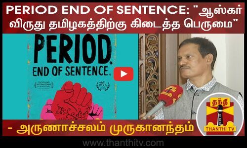 கோவையைச் சேர்ந்த தமிழர் அருணாச்சலம் முருகானந்தம் நடித்த PERIOD END OF SENTENCE என்ற ஆவண குறும்படத்துக்கு, ஆஸ்கர் விருது கிடைத்துள்ளது. ஈரானிய - அமெரிக்க இயக்குனர் Rayka Zehtabchi இந்தப் படத்தை இயக்கி உள்ளார். இந்திய பெண்கள் மாதவிடாய் காலங்களில் சந்திக்கும் பிரச்னைகளை அடிப்படையாக கொண்டு இப்படம் எடுக்கப்பட்டுள்ளது. கோவையை சேர்ந்த அருணாச்சலம் முருகானந்தம், ஏழை பெண்களுக்காக தயாரித்த மலிவு விலை நாப்கின்களை மையப்படுத்தி இப்படம் எடுக்கப்பட்டுள்ளது. ஏற்கனவே இவரது வாழ்க்கை வரலாறு 'பேட்மேன்' என்ற பெயரில் இந்தி திரைப்படமாக எடுக்கப்பட்டது. ஆஸ்கர் விருது கிடைத்தது குறித்து அவர் கூறும்போது, இந்த விருது தமிழகத்திற்கு கிடைத்த பெருமை என்றார்.