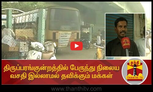 மதுரை மாவட்டம் திருப்பரங்குன்றத்தில் பேருந்து நிலையம் இல்லாமல் மக்கள் பரிதவித்து வருகின்றனர்.