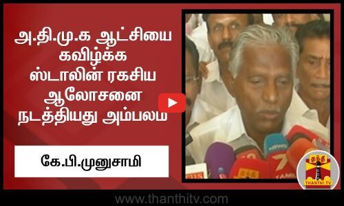 அ.தி.மு.க ஆட்சியை கவிழ்க்க தி.மு.க தலைவர் ஸ்டாலின் ரகசிய ஆலோசனை நடத்தியது, தங்க தமிழ்ச்செல்வன் கூற்று மூலம் அம்பலமாகியிருப்பதாக அக்கட்சியின் துணை ஒருங்கிணைப்பாளர் கே.பி.முனுசாமி தெரிவித்துள்ளார்.