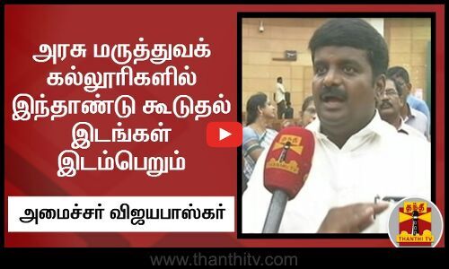 அரசு மருத்துவக் கல்லூரிகளில் இந்தாண்டு கூடுதல் இடங்கள் இடம்பெறும் - அமைச்சர் விஜயபாஸ்கர்