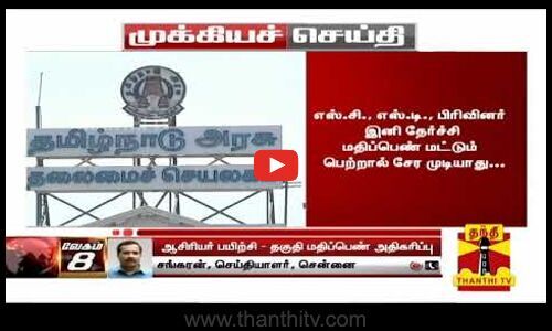 கடந்த 2002-2003ஆம் ஆண்டு முதல் ஆசிரியர் பட்டயப் படிப்பில் சேருவதற்கு ஆதிதிராவிடர், ஆதிதிராவிடர் அருந்ததியர், பழங்குடியினருக்கு 12ஆம் வகுப்பு பொதுத்தேர்வில் தேர்ச்சி பெற்றாலே போதுமானது என இருந்தது. பிற வகுப்பினர்கள் 45 விழுக்காடு மதிப்பெண் பெற்றிருக்க வேண்டும் எனவும் அரசு அறிவித்திருந்தது. இந்நிலையில், நடப்பாண்டு மாணவர் சேர்க்கைக்காக பள்ளிக் கல்வித்துறை முதன்மைச் செயலர் பிரதீப் யாதவ் வெளியிட்டுள்ள அரசாணையில், எஸ்.சி., எஸ்.டி., பிரிவினருக்கான குறைந்தபட்ச மதிப்பெண்களை உயர்த்தி உத்தரவிட்டுள்ளார்.