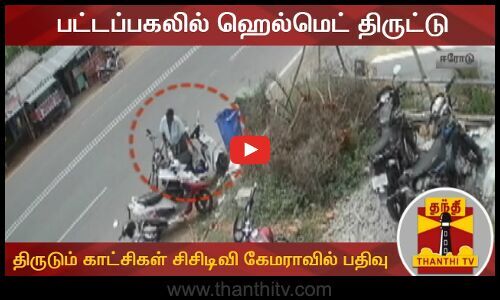 ஈரோடு மாவட்டம், சத்தியமங்கலத்தில் பட்டப்பகலில், ஹெல்மெட் திருடும் காட்சி சி.சி.டி.வி. கேமராவில் பதிவாகியுள்ளது. ச