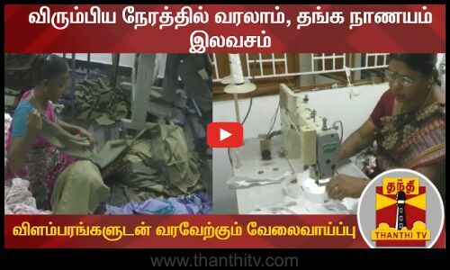 விரும்பிய நேரத்தில் வரலாம், தங்க நாணயம் இலவசம், வெளிநாடு சுற்றுலா அழைத்துச் செல்லப்படுவீர் என பின்னலாடை நிறுவனம் வேலைக்கு அழைப்பு விடுத்துள்ள வினோதம், பலரது கவனத்தையும் ஈர்த்துள்ளது.