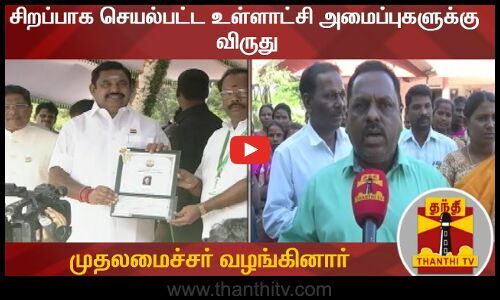 தமிழகத்தில் சிறப்பாக செயல்பட்ட உள்ளாட்சி அமைப்புகளுக்கு, முதலமைச்சர் எடப்பாடி பழனிசாமி விருதுகளை வழங்கினார்.