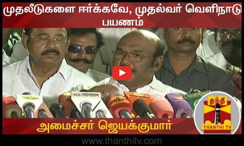 முதலீடுகளை ஈர்க்கவே, முதல்வர் வெளிநாடு பயணம் - அமைச்சர் ஜெயக்குமார்