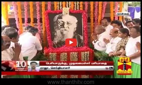 தந்தை பெரியாரின் 141ஆவது பிறந்தநாளை முன்னிட்டு, சென்னை அண்ணா சாலையில் உள்ள அவரது சிலைக்கு கீழ் வைக்கப்பட்டுள்ள உருவப்படத்திற்கு, முதலமைச்சர் எடப்பாடி பழனிசாமி, துணை முதலமைச்சர் ஓ.பன்னீர் செல்வம் உள்ளிட்டோர் மலர் தூவி மரியாதை செலுத்தினர்.