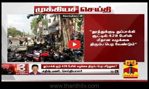 தூத்துக்குடி துப்பாக்கிச் சூடு சம்பவம் தொடர்பாக 428 நபர்களின் மீதுள்ள வழக்கை நல்லெண்ண அடிப்படையில் திரும்பப் பெறவேண்டும் என ஒரு நபர் ஆணையம் தமிழக அரசுக்கு பரிந்துரை செய்துள்ளதாக தகவல் வெளியாகியுள்ளது.