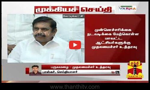 பருவமழைக்கான முன்னெச்சரிக்கை நடவடிக்கைகளை மேற்கொள்ள, மாவட்ட ஆட்சியர்களுக்கு முதலமைச்சர் எடப்பாடி பழனிசாமி உத்தரவிட்டுள்ளார்.