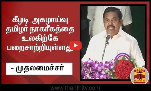 கீழடி அகழாய்வு தமிழர் நாகரீகத்தை உலகிற்கே பறைசாற்றியுள்ளது - முதலமைச்சர் பழனிசாமி