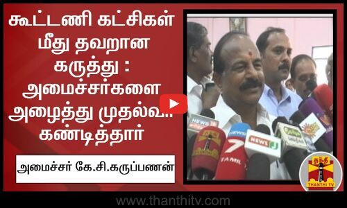 கூட்டணி கட்சிகள் மீது தவறான கருத்து : அமைச்சர்களை அழைத்து முதல்வர் கண்டித்தார் - கே.சி.கருப்பணன்