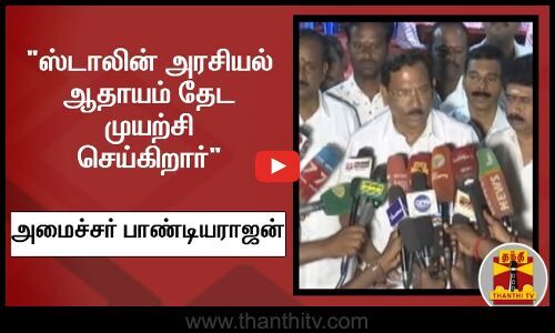 ஸ்டாலின் எல்லா விஷயங்களிலும் அரசியல் ஆதாயம் தேட முயற்சி செய்கிறார் என குற்றம் சாட்டினார்.