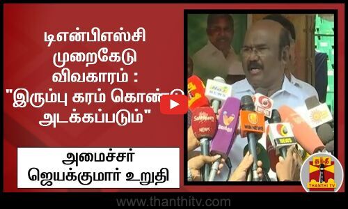டிஎன்பிஎஸ்சி முறைகேடு விவகாரம் : "இரும்பு கரம் கொண்டு அடக்கப்படும்" - அமைச்சர் ஜெயக்குமார் உறுதி