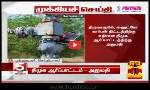 ஹைட்ரோ கார்பன் திட்டத்திற்கு எதிரான திமுக திருவாரூரில் நடத்த உள்ள போராட்டத்துக்கு அனுமதி வழங்கப்பட்டுள்ளது.