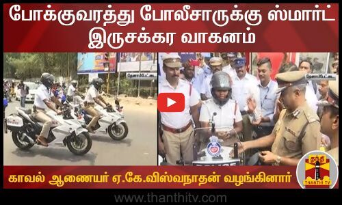 சென்னையில் போக்குவரத்து போலீசாருக்கு ஸ்மார்ட் இருசக்கர வாகனங்கள் மற்றும் கோடை கால மோர் வழங்கும் திட்டத்தை காவல் ஆணையர் ஏ.கே.விஸ்வநாதன் தொடங்கி வைத்தார். சுசுகி நிறுவனம் தயாரித்துள்ள இந்த இருசக்கர வாகனத்தில் சைரன், ஒலிப்பெருக்கி, தலைக்கவசத்துடன் கூடிய மைக் ஆகியவை இடம்பெற்றுள்ளன. தேனாம்பேட்டையில் நடைபெற்ற நிகழ்ச்சியில் பெண் உதவி ஆய்வாளர் உட்பட 5 போலீசாருக்கு, ஸ்மார்ட் இருசக்கர வாகனம் வழங்கப்பட்டது.