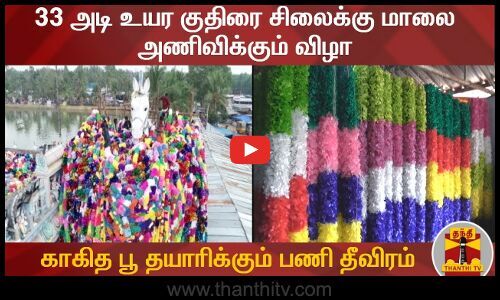 33 அடி உயர குதிரை சிலைக்கு மாலை அணிவிக்கும் விழா - காகித பூ தயாரிக்கும் பணி தீவிரம்
