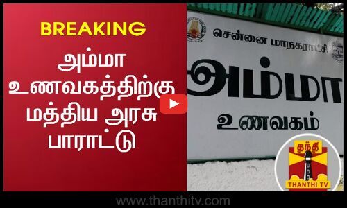 அம்மா உணவகத்திற்கு மத்திய அரசு பாராட்டு : அம்மா உணவகத்தின் மூலம் 85 லட்சம் பேர் பயன்