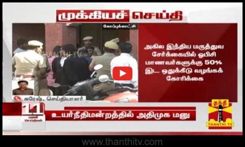 தமிழ்நாட்டில் உள்ள மருத்துவ கல்லூரிகளில் அகில இந்திய ஒதுக்கீடுக்கு வழங்கப்படும் இடங்களில், இதர பிற்படுத்தப்பட்ட வகுப்பினருக்கு 50 சதவீத இடஒதுக்கீட்டை அமல்படுத்த வேண்டும் என சென்னை உயர்நீதிமன்றத்தில் அதிமுக சார்பில் அமைச்சர் சிவி சண்முகம் வழக்கு தொடர்ந்துள்ளார். இடஒதுக்கீடு மறுக்கப்பட்டுள்ளதால், இதர பிற்படுத்தப்பட்ட வகுப்பை சேர்ந்த தகுதியான மாணவர்களின் வாய்ப்பு பறிபோவதாகவும் இதற்கு மத்திய அரசே காரணமாக இருக்கக்கூடாது என்றும் இந்த மனுவில் வலியுறுத்தப்பட்டுள்ளது. ஏற்கனவே திமுக மற்றும் மதிமுக சார்பில் இதுகுறித்து மனுக்கள் தாக்கல் செய்யப்பட்டுள்ளன. விரைவில் இந்த மனுக்கள் அனைத்தும் விசாரணைக்கு வர உள்ளன.