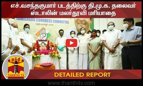 தமிழக காங்கிரஸ் கட்சி தலைமை அலுவலகமான சென்னை சத்தியமூர்த்தி பவனில் மறைந்த எம்பி வசந்தகுமாரின் திருவுருவப்படம் திறப்பு நிகழ்ச்சி நடைபெற்றது. இதில், தி.மு.க. தலைவர் ஸ்டாலின் கலந்து கொண்டு மலர் தூவி மரியாதை செலுத்தினார். இந்த நிகழ்ச்சியில் காங்கிரஸ் கட்சியின் மூத்த தலைவர்கள் பங்அகேற்றனர்.